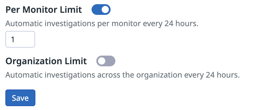 Default: Each monitor can trigger one automatic investigation per 24 hours.