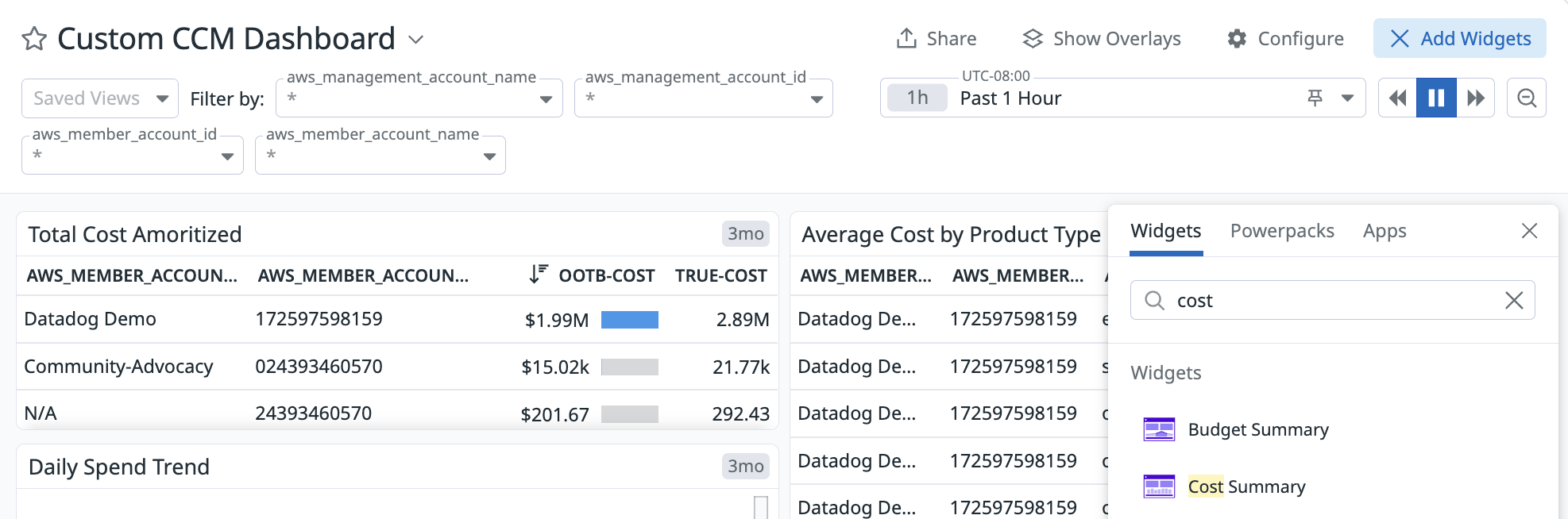 Watch this video tutorial on using cost data in Datadog Dashboards:
