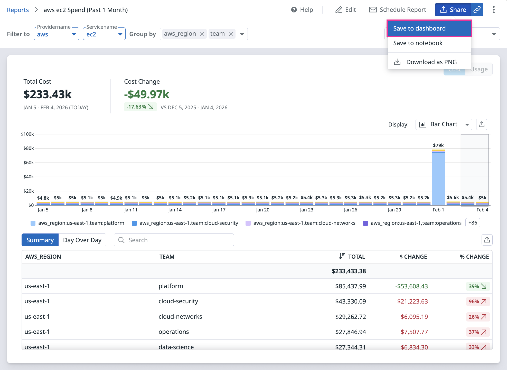 1. Go to Cloud Cost > Analyze > Reports in Datadog.