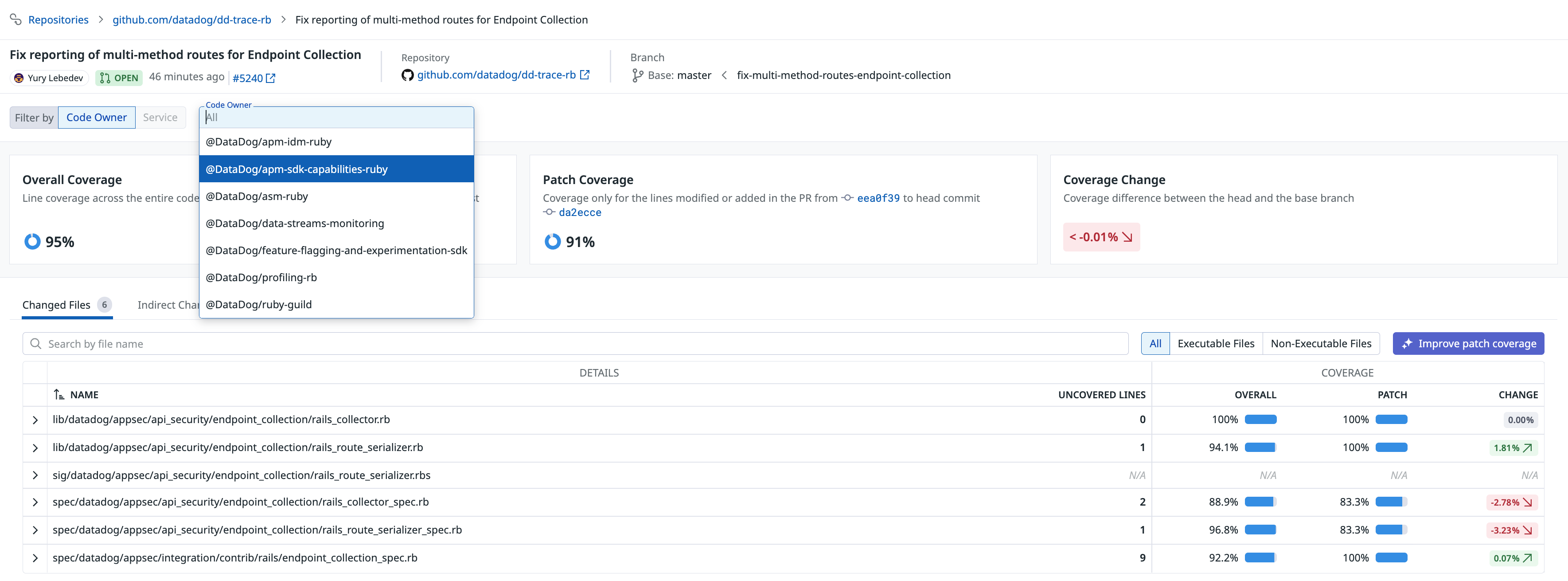 Code owner-based coverage not appearing