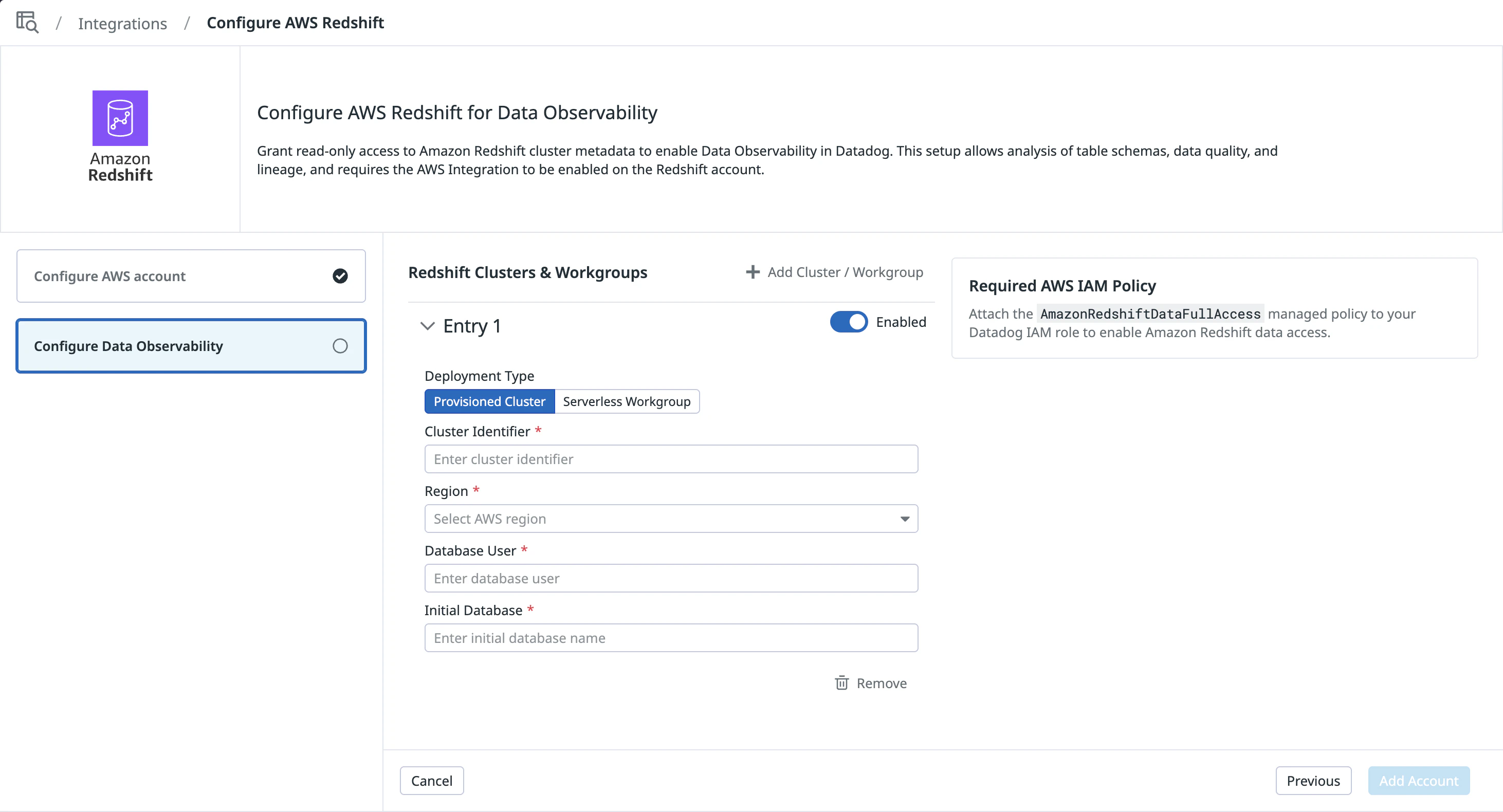 Datadog supports both provisioned Redshift clusters and Redshift Serverless workgroups.
