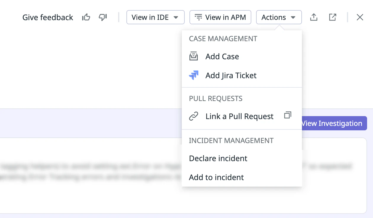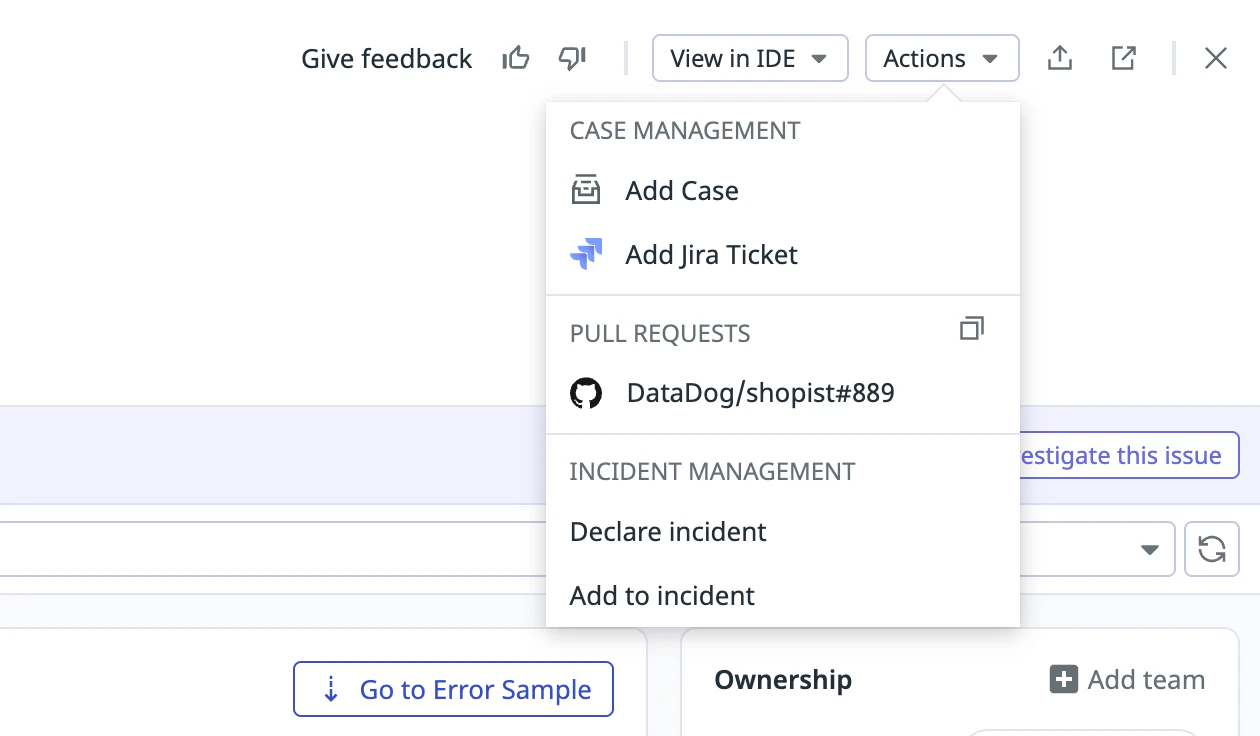 - Automatically resolve issues: When a linked pull request is merged, Datadog automatically moves the issue to