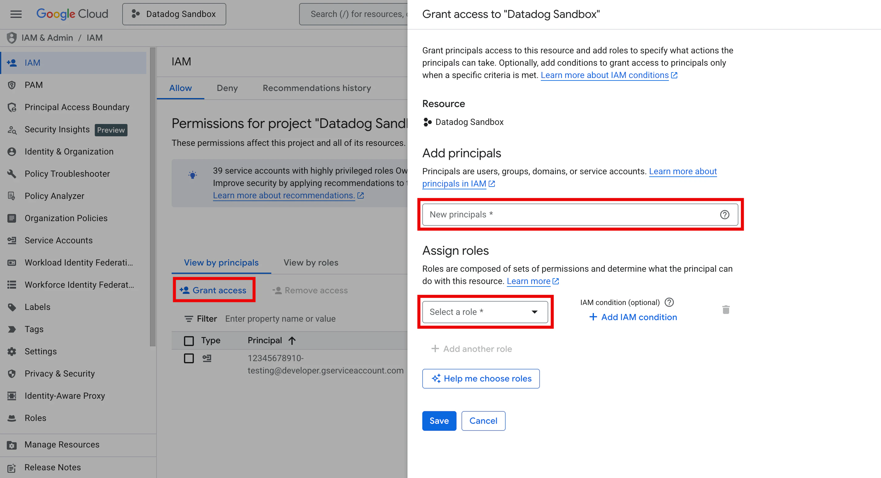 Datadog connects to BigQuery through a Google Cloud service account. If you already have a service account connected to Datadog, skip to Step 1. Otherwise, expand the section below to create one.