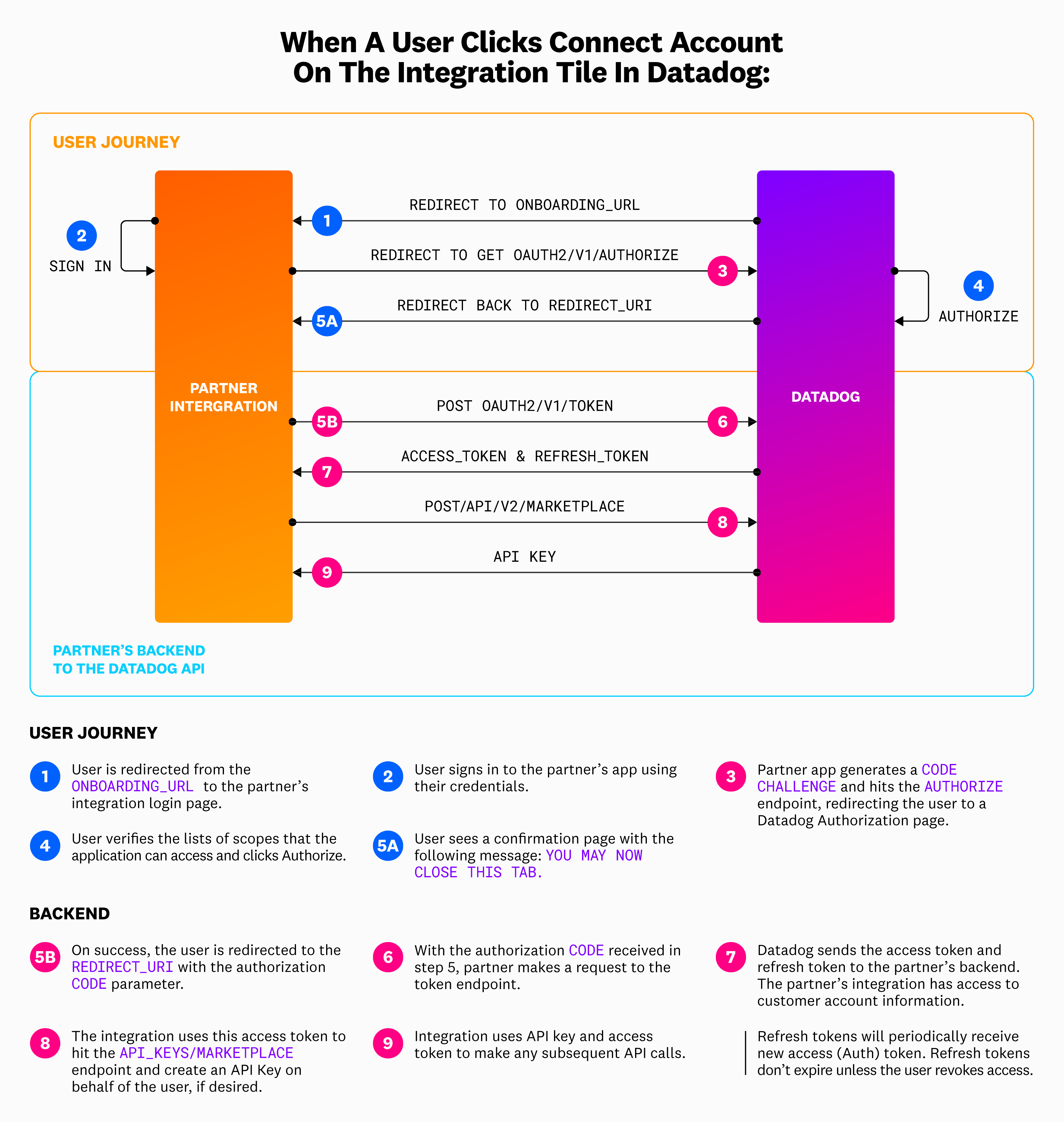 Datadog recommends that partners prompt users to initiate authorization from Datadog, rather than from their own platform.