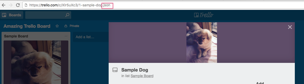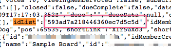 Click on a card in the list you’d like to add cards to. Append .json to the URL, and then navigate to that URL.