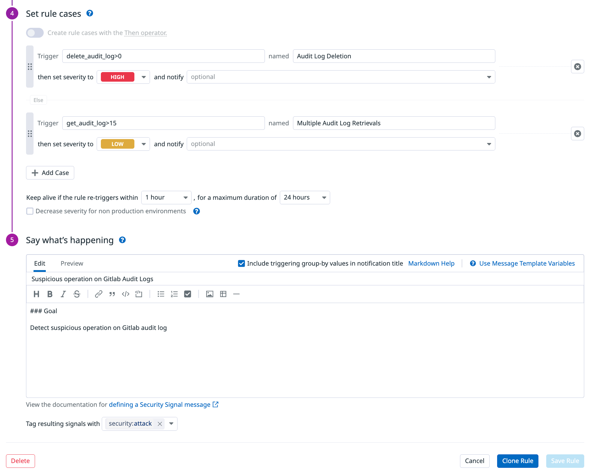 Setting rule cases and writing the notification message:
