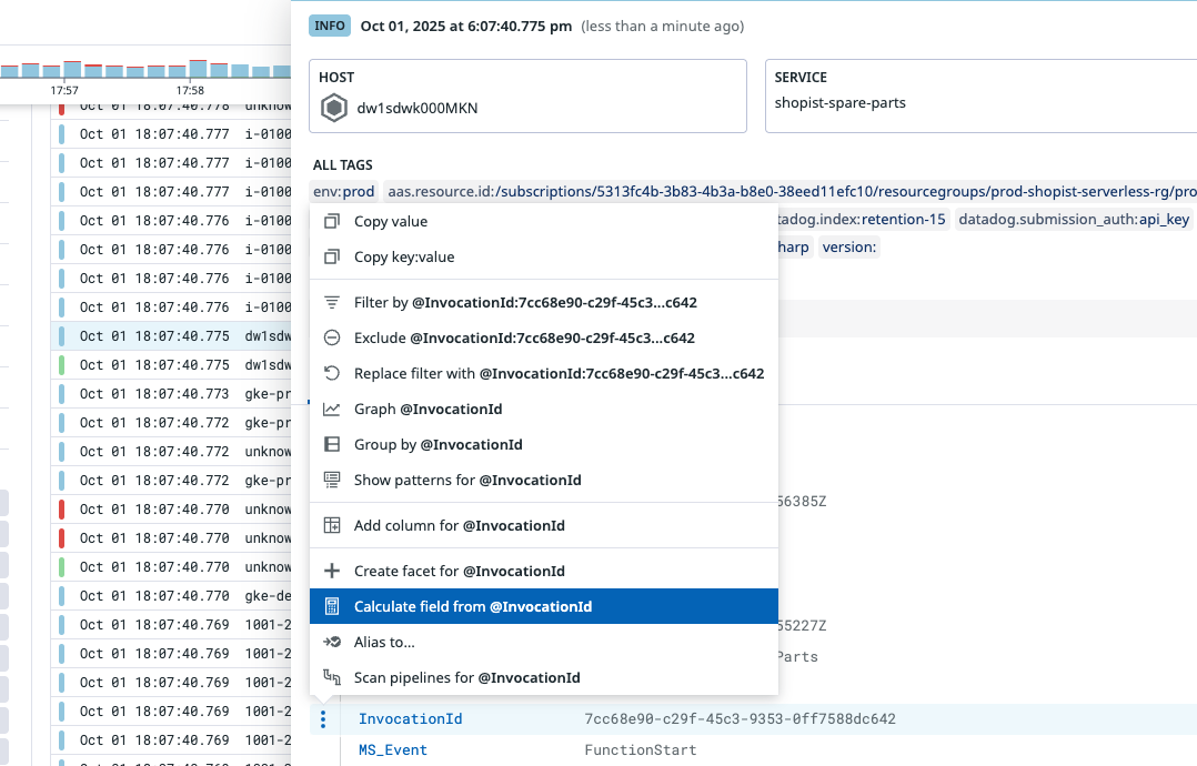 If you find that a calculated field is valuable in the long-term, update your log pipelines so your team benefits from automated processing.