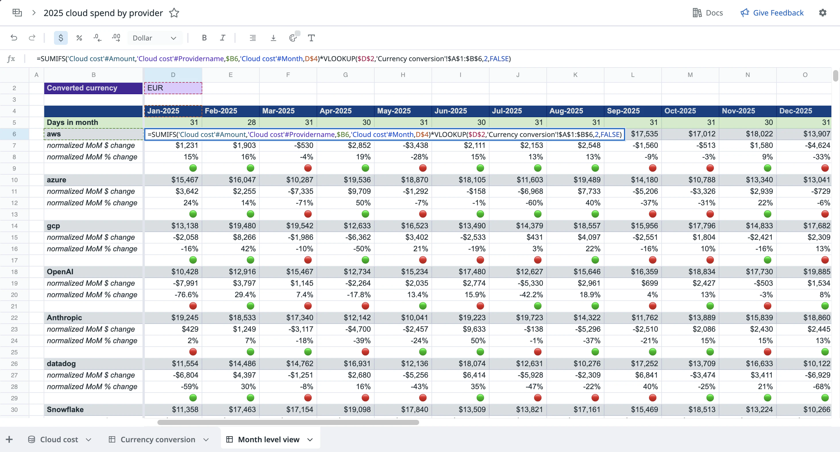 Sheets lets you manipulate, transform, and analyze data from logs, real user monitoring, and cloud cost monitoring in a familiar spreadsheet interface. It can contain the following tabs: