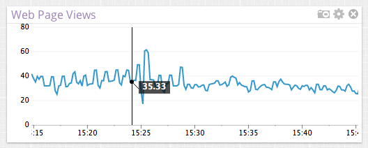 DogStatsD normalizes counters over the flush interval to report per-second units. In the graph above, the marker is reporting 35.33 web page views per second at ~15:24. In contrast, if one person visited the webpage each second, the graph would be a flat line at y = 1.
