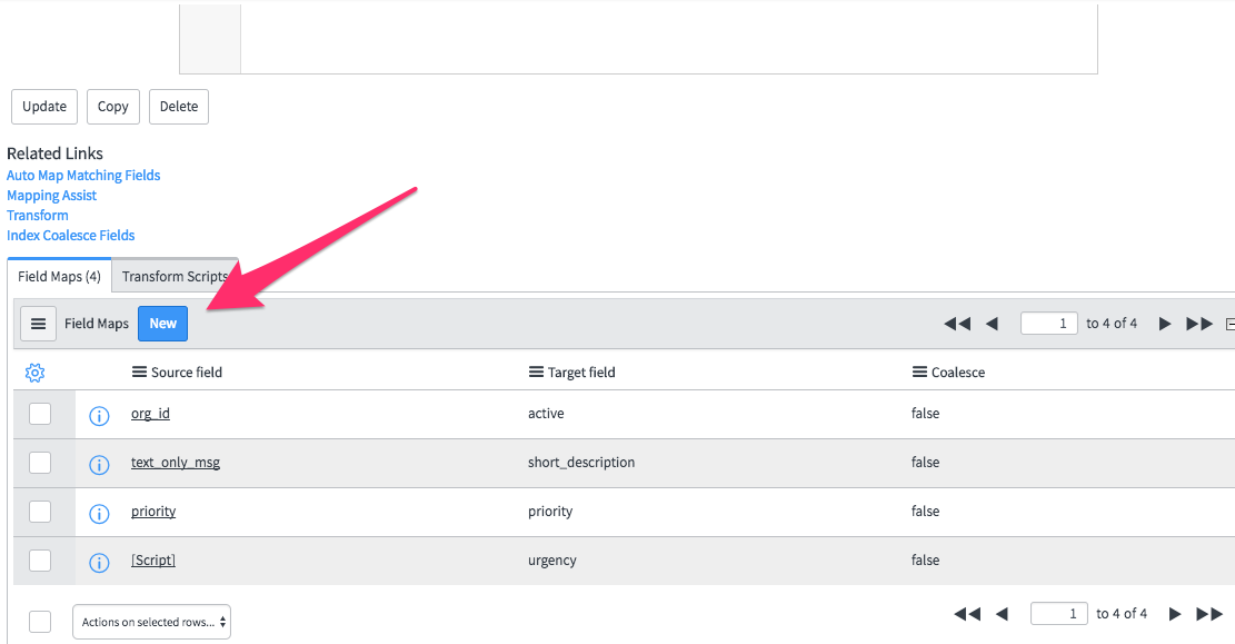 The field mappings are at the bottom of the record. Some basic mappings are included. This is where you select the fields to include, define the format, and select the target fields in your ServiceNow instance.