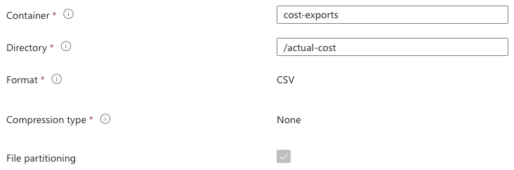 Note: Billing exports can be stored in any subscription. If you are creating exports for multiple subscriptions, Datadog recommends storing them in the same storage account. Export names must be unique.