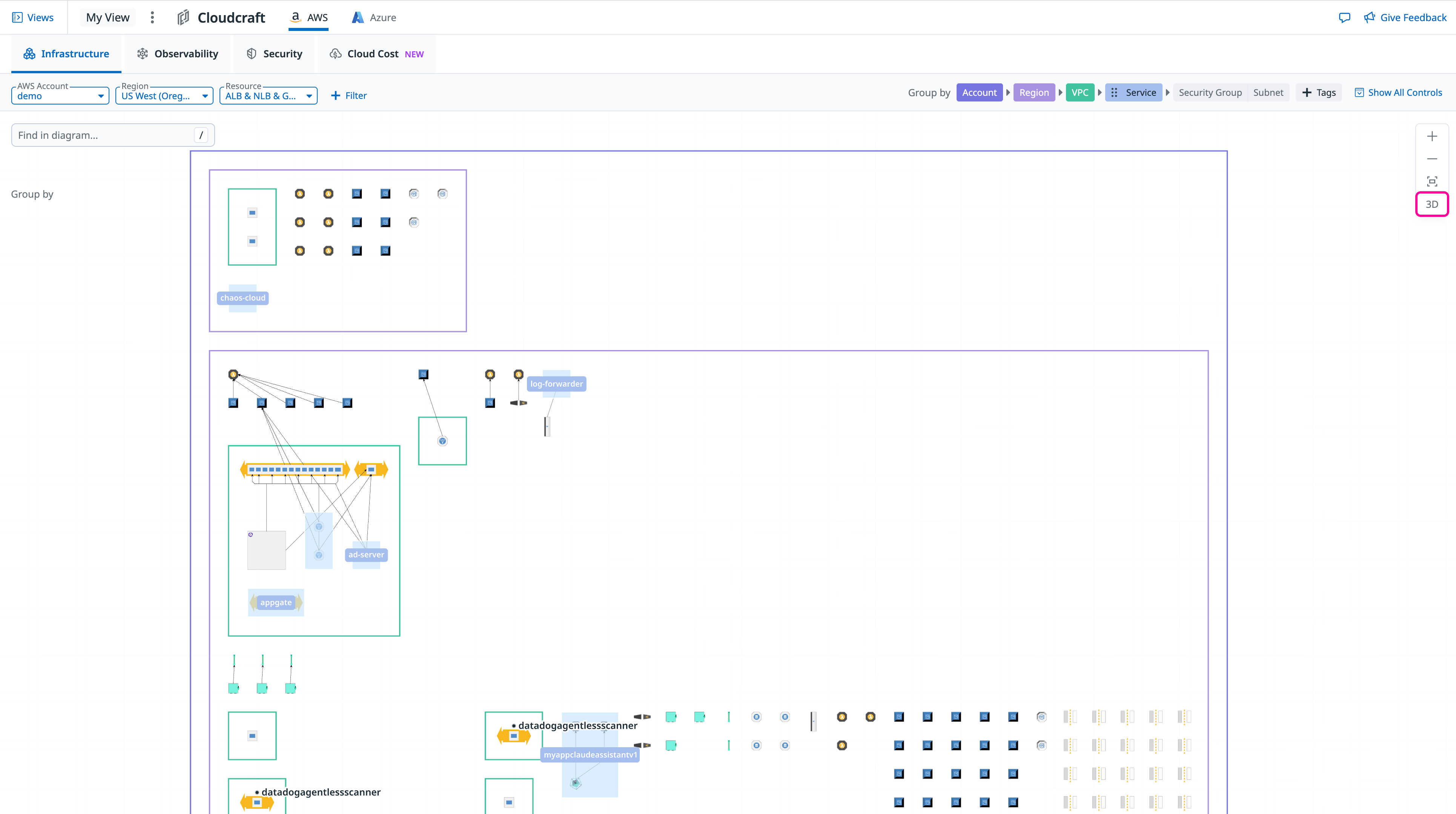 - Navigate to Infrastructure > Resources > Cloudcraft.
