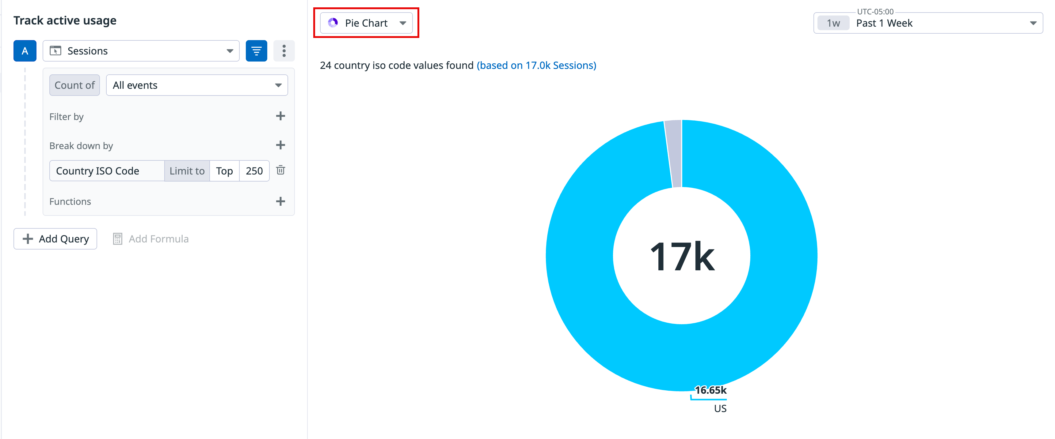 A pie chart helps you organize and show data as a percentage of a whole. It is useful when comparing the relationship between different dimensions such as services, users, hosts, and countries. within your log data.
