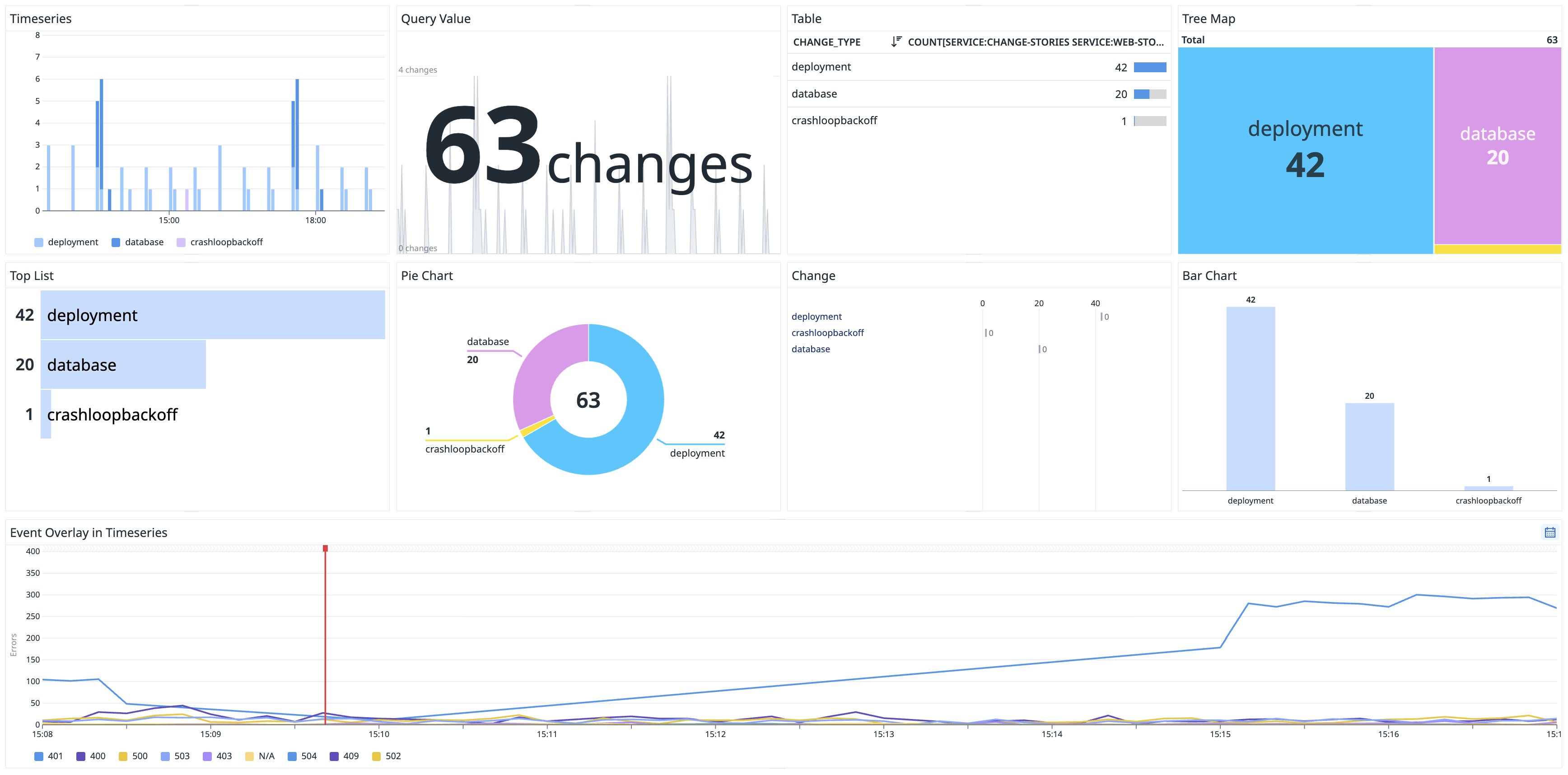 To see relevant changes within the timeline and as overlays on your dashboard, ensure you have set at least one timeseries widget.