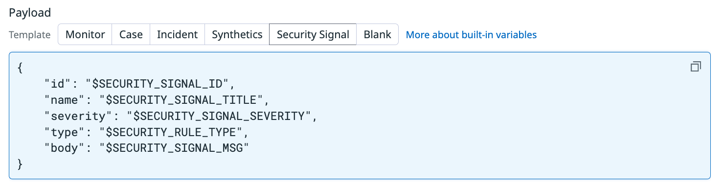 You can use webhooks to send alerts to other platforms, such as SOAR. To set up a webhook: