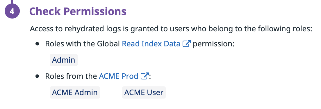 ACME Admin and ACME Userroles. - Assign Standard Access and basic permissions, such as Logs Read Index Data and Logs Live Tail.