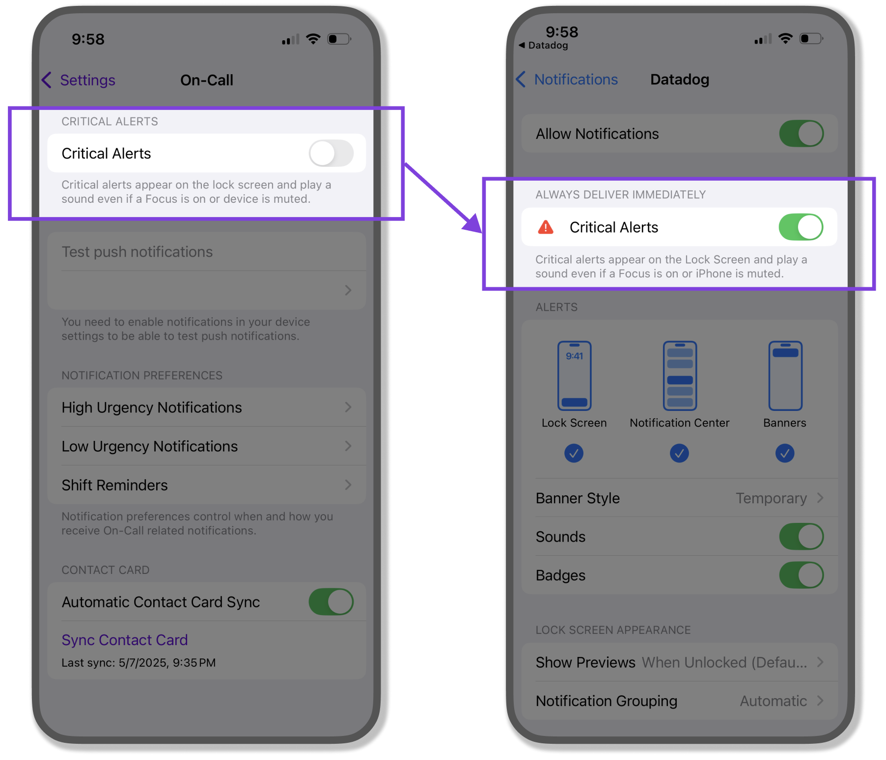 Then tap Bypass Do Not Disturb and enable Override Do Not Disturb in System Settings for High Urgency On-Call.