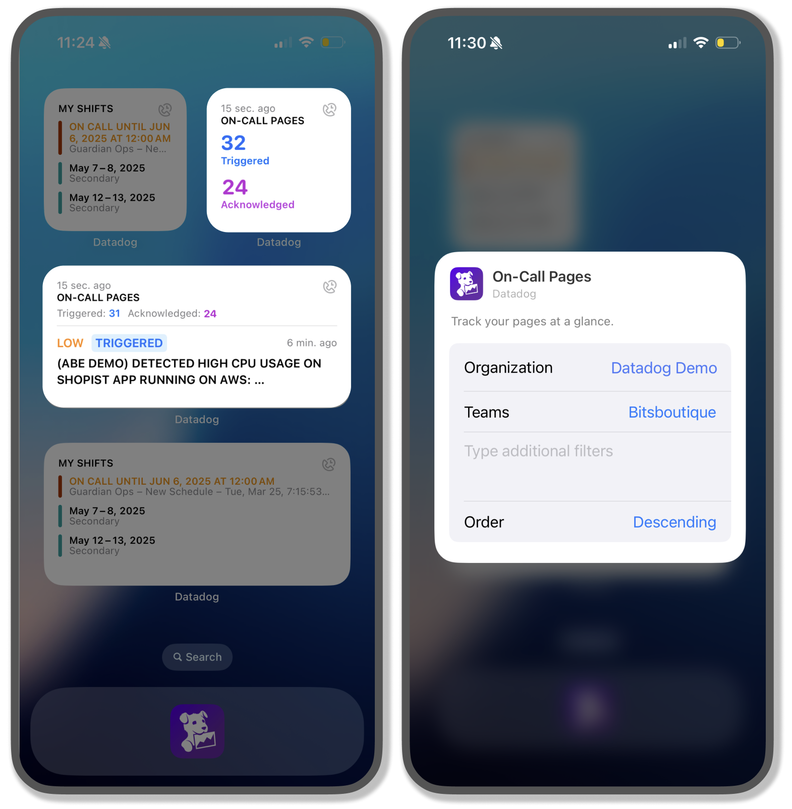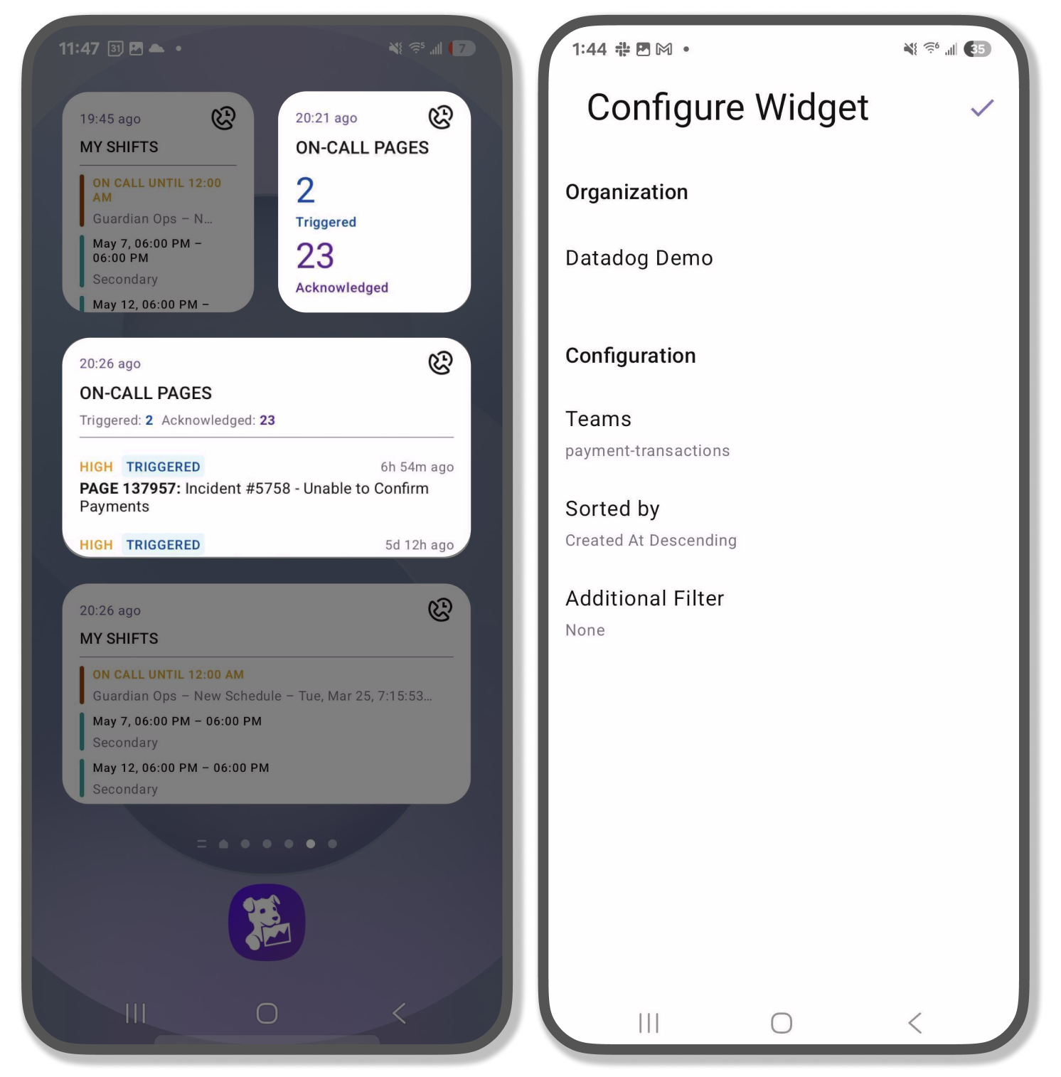 View your On-Call shifts and On-Call pages on your mobile home screen with Datadog widgets.