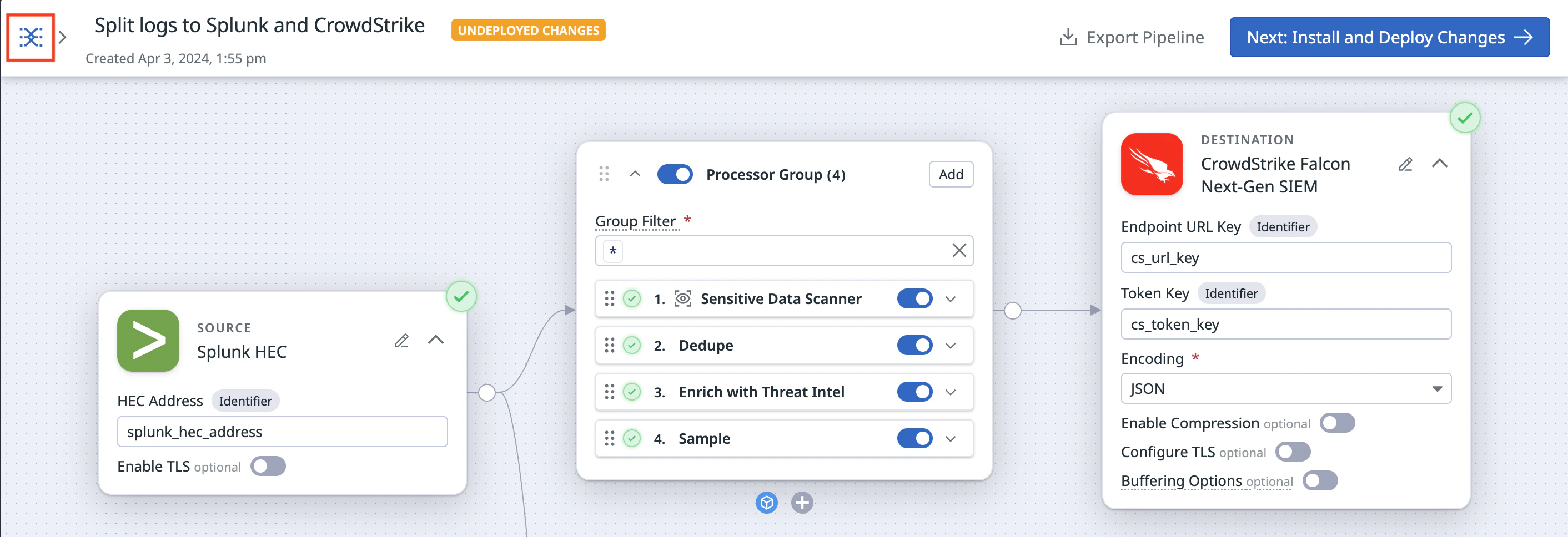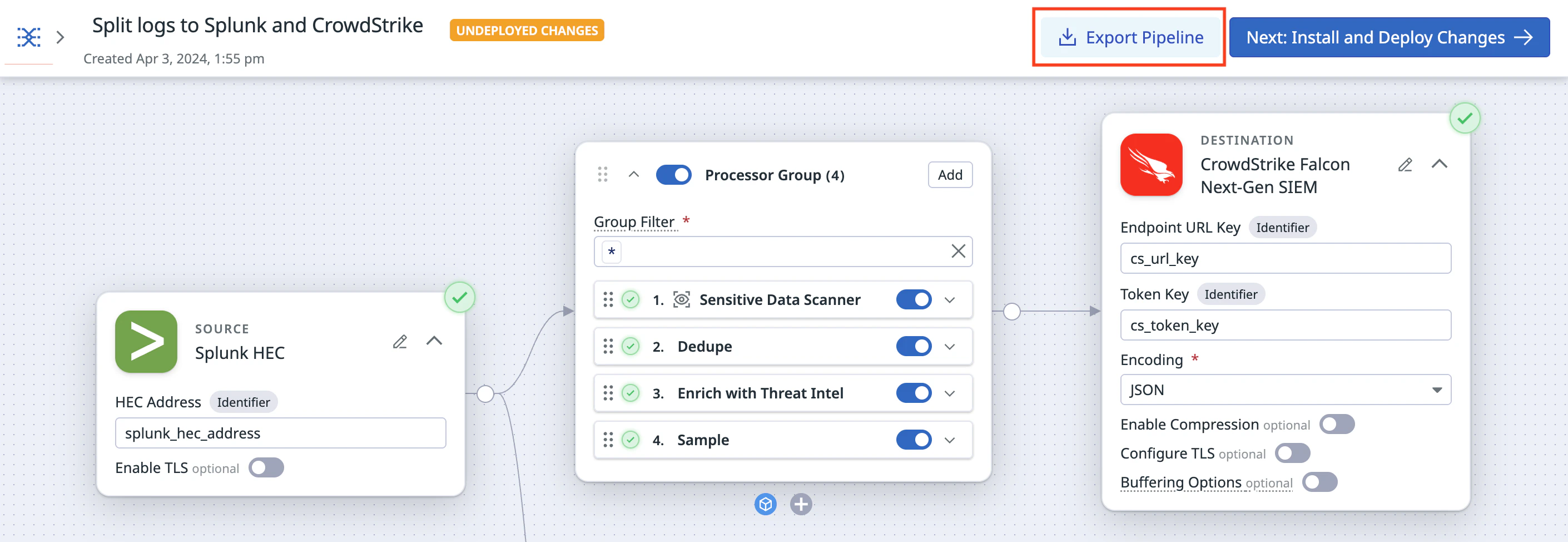 2. Set up a pipeline by adding your source, processors, and destinations.