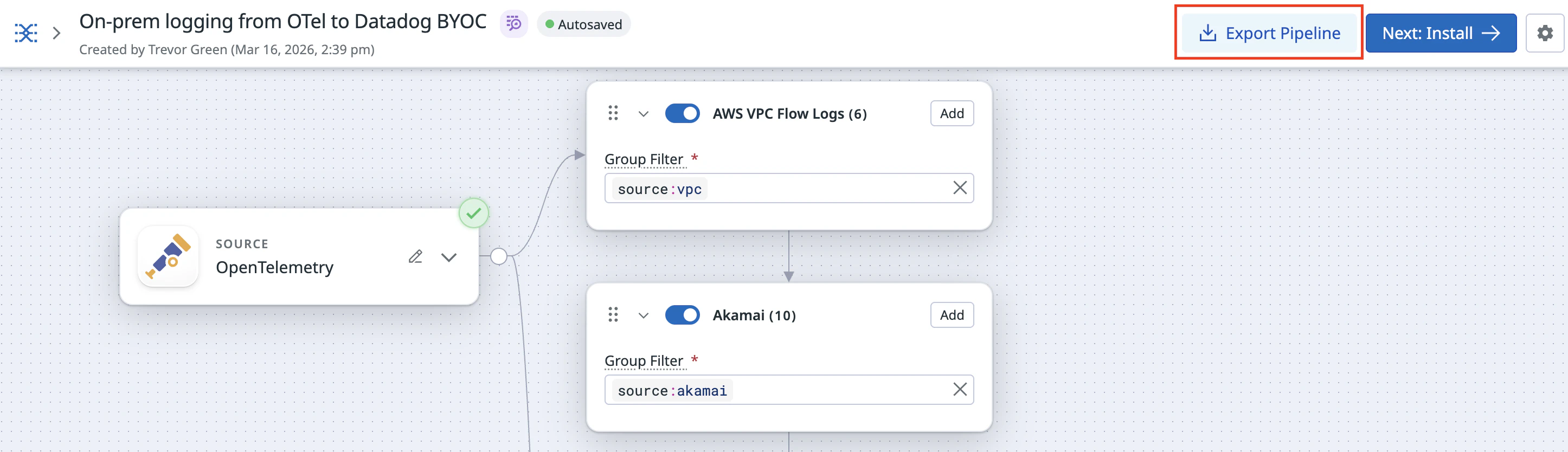 3. After your pipeline has been configured, click Export Pipeline.