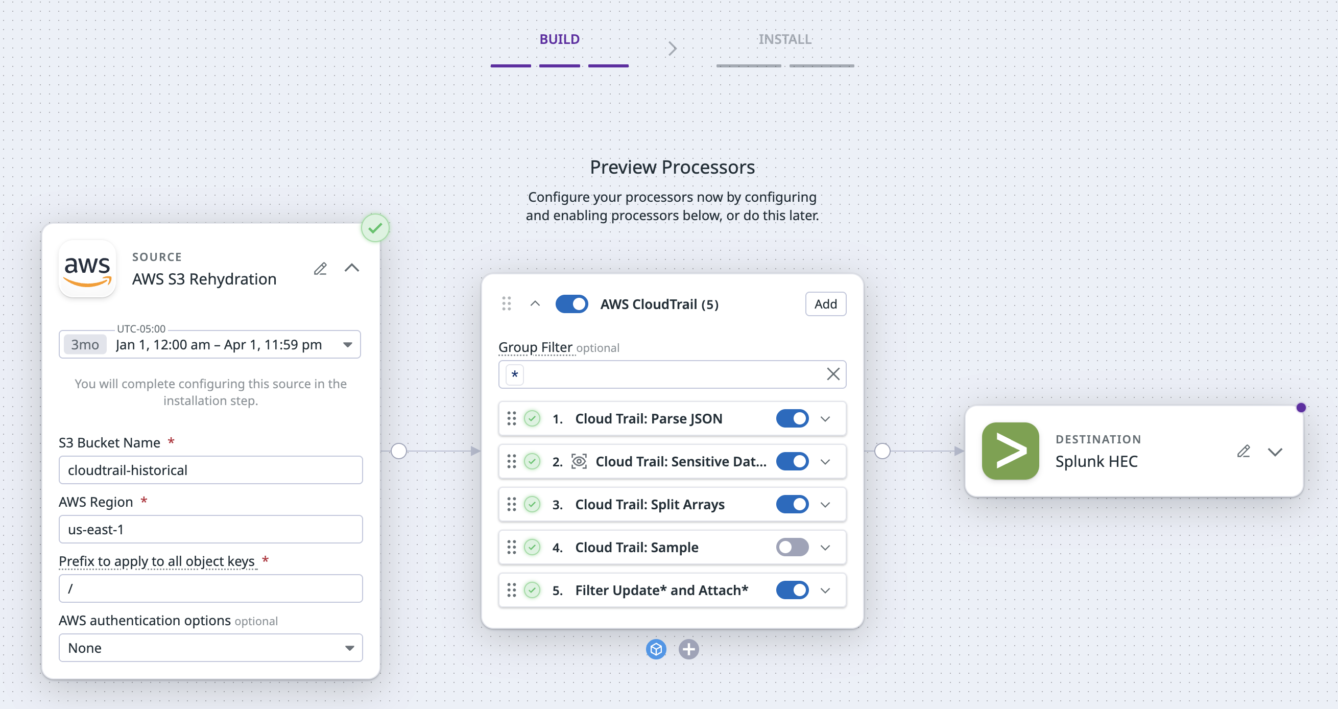 Organizations often store large volumes of logs in cost-efficient, long-term archives to control spend and meet compliance requirements. However, historical data often becomes difficult to access when there is a security incident, audit request, or operational investigation. Retrieving archived logs from cold storage can be slow, manual, and disruptive, requiring ad-hoc scripts, decompression, or dedicated engineering effort. Rehydration for Observability Pipelines solves these issues.