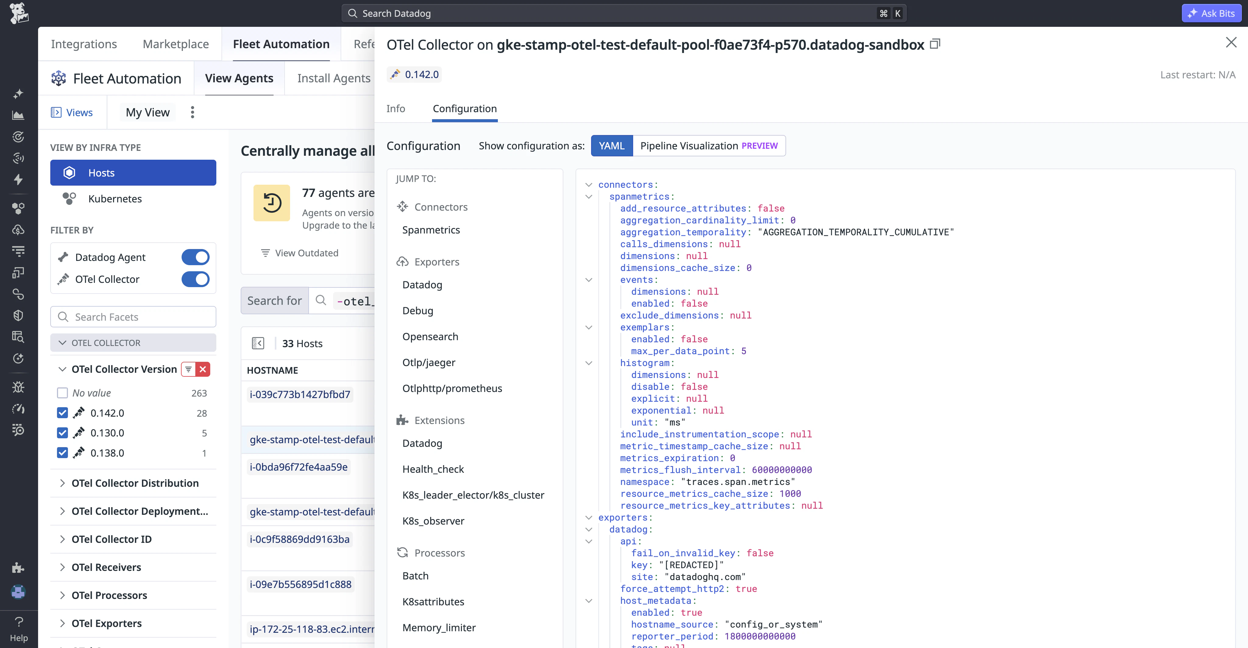 - Fleet Management: Monitor and manage your OpenTelemetry Collector fleet from the Datadog UI.