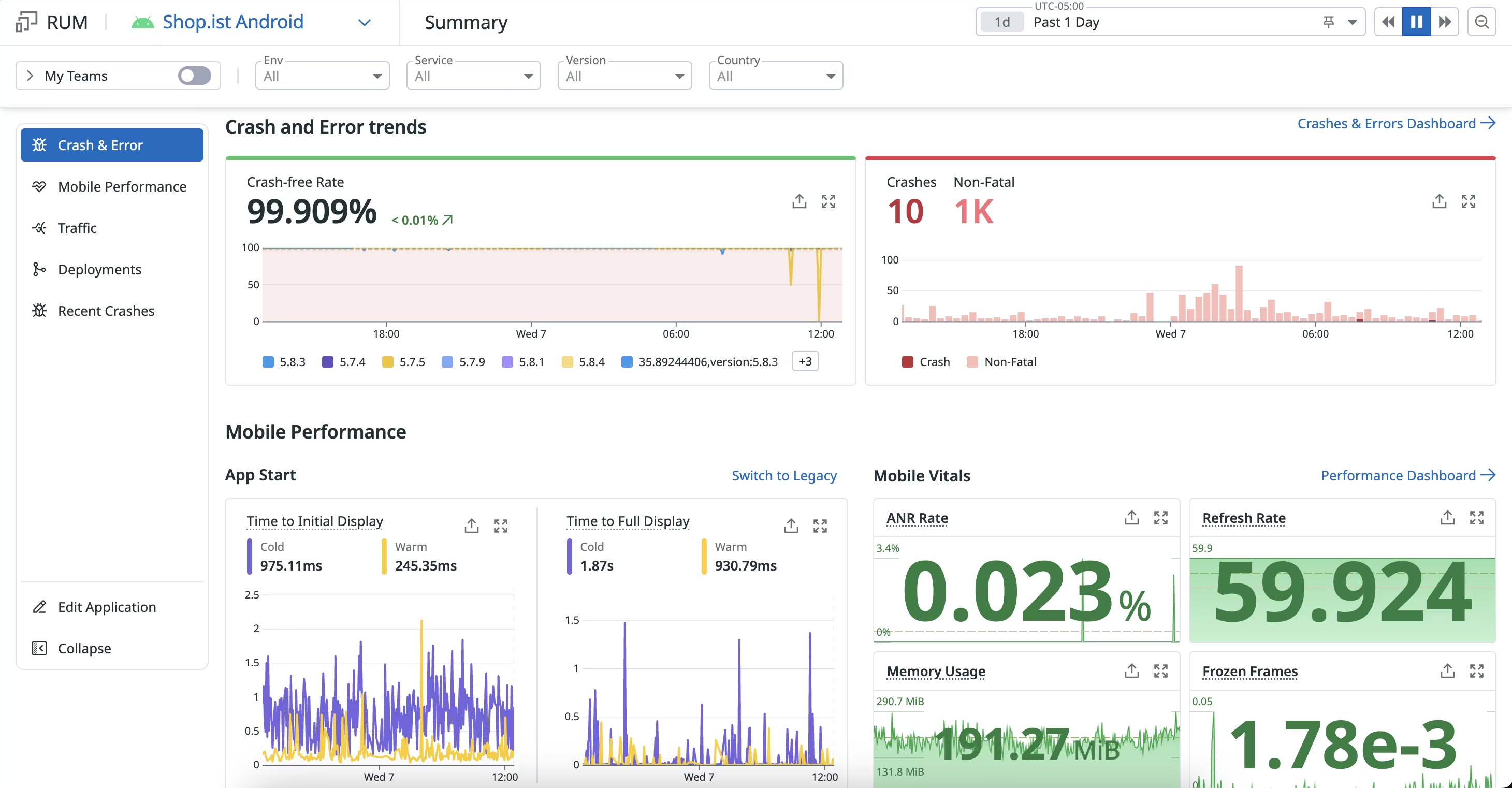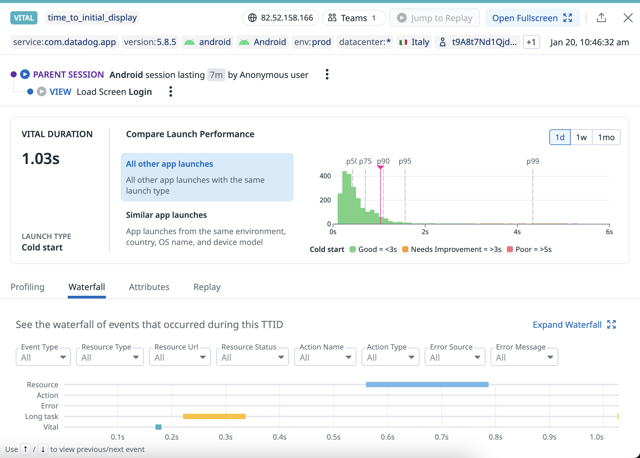 - View launch performance trends in the RUM Summary and Mobile Performance Dashboard