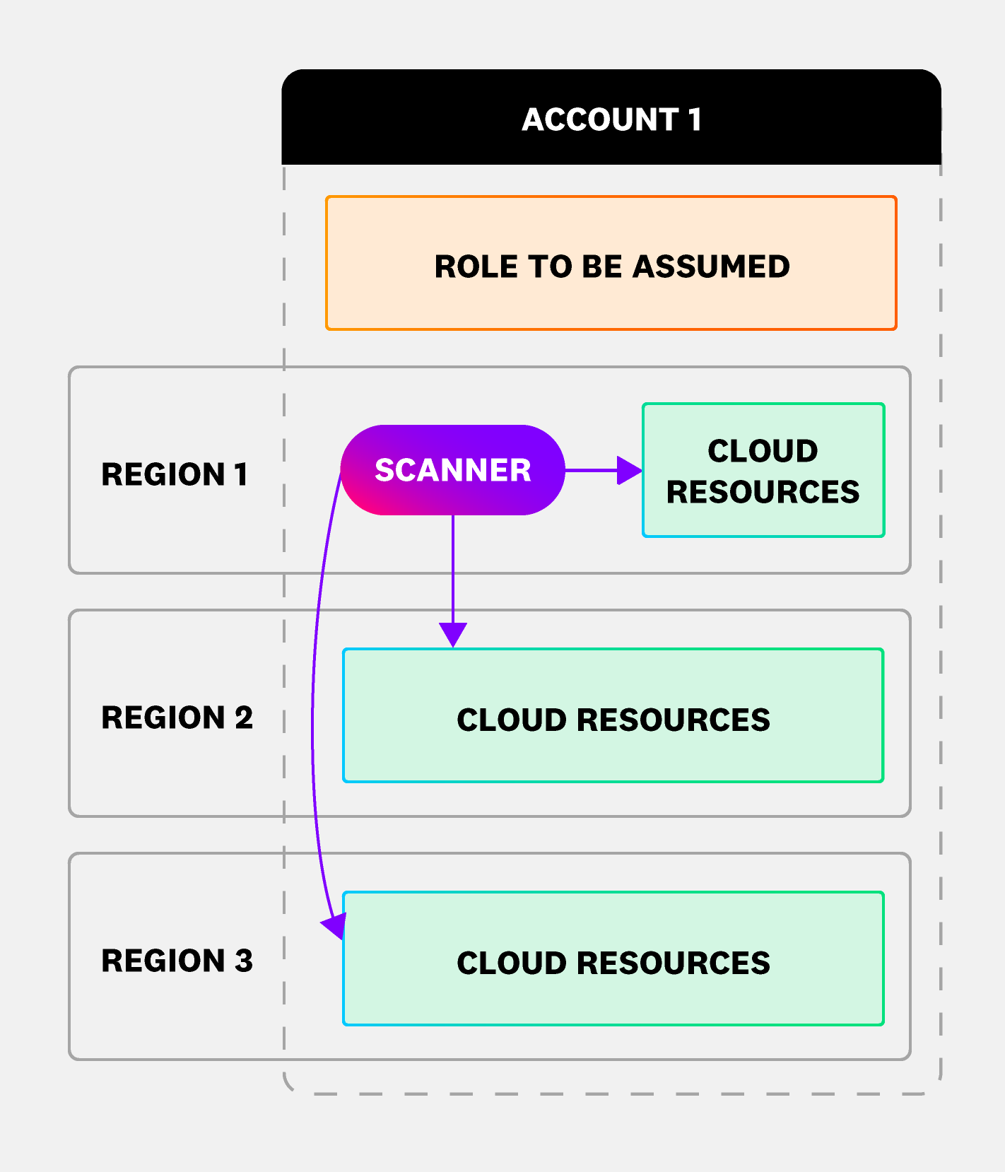 With cross-account scanning, Agentless scanners are deployed across multiple regions in a single cloud account. The deployed Agentless scanners are granted visibility across multiple accounts without needing to perform cross-region scans, which are expensive in practice.