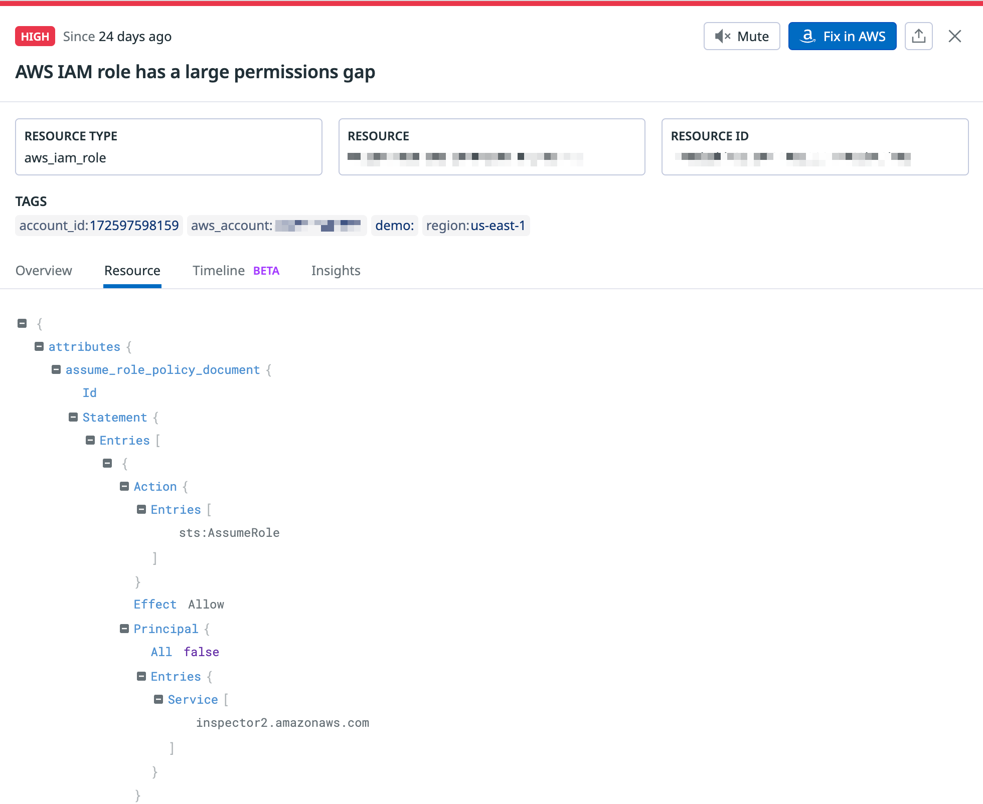 - It can take up to two hours before AWS IAM Access Analyzer's insights become available in Datadog.