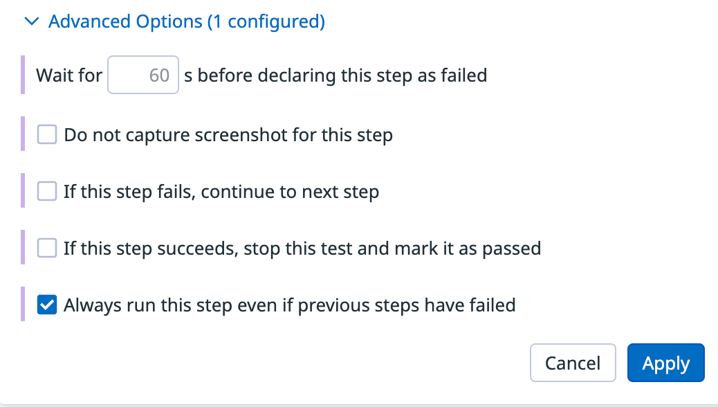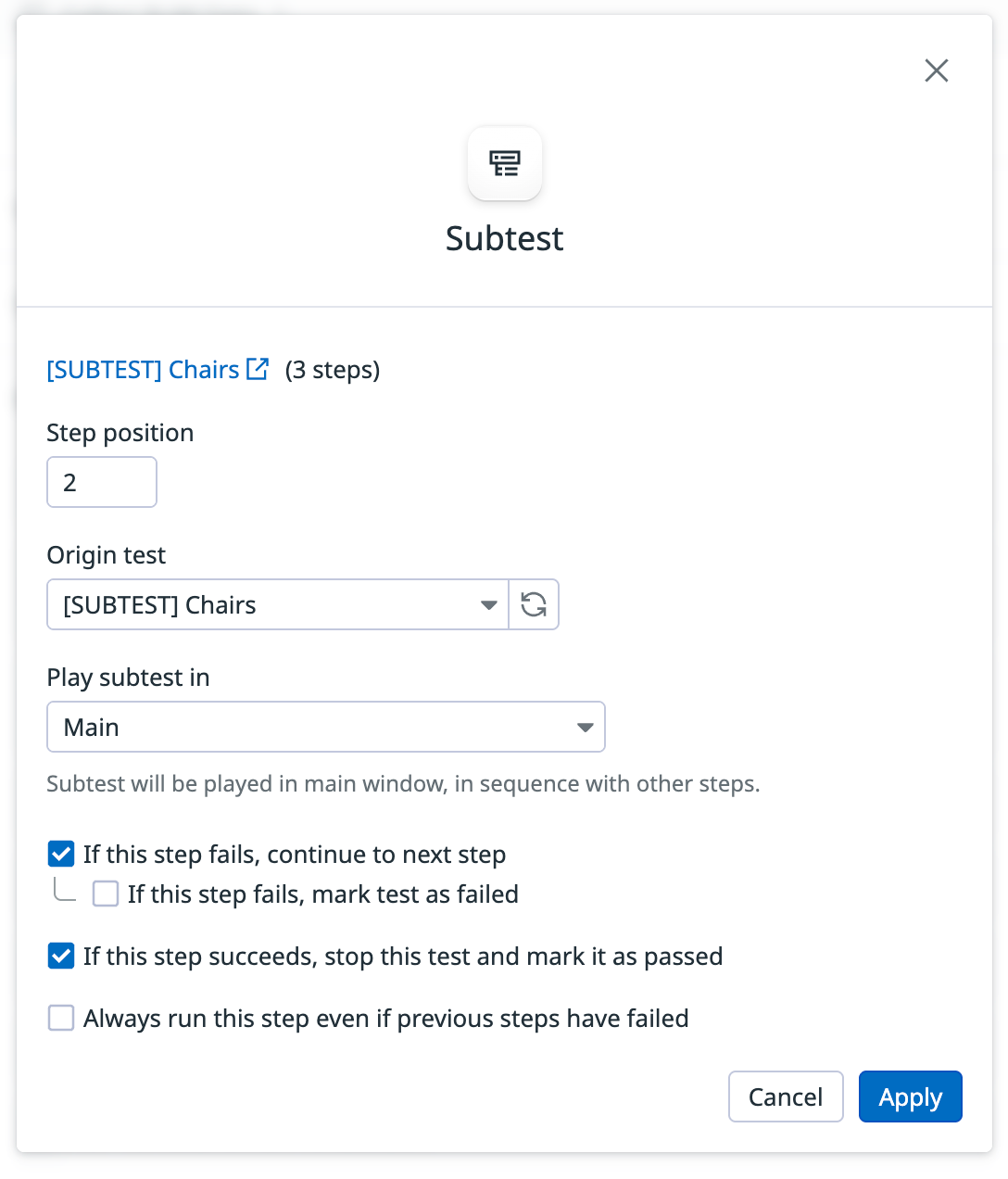 2. In the subtest’s advanced options, enable Always run this step.